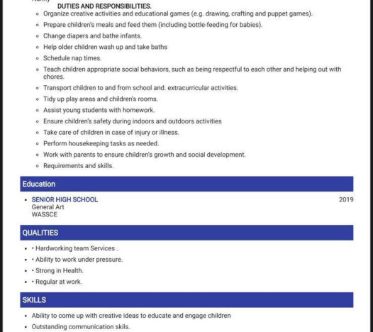 Childcare Housekeeping Cooking| Nationality | Other |